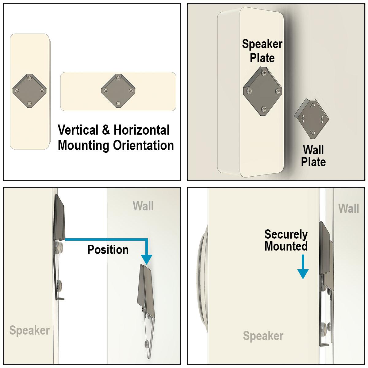 The included “diamond” mount adds only 1/4" to the overall depth and can be rotated +/- 5 degrees after installation to ensure the speaker lines up perfectly with your TV.