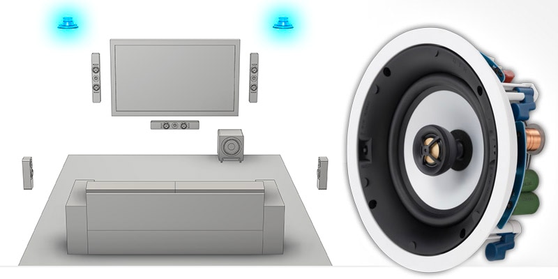 While some manufacturers offer speakers with an upward firing driver to bounce sound off the ceiling, the best performance comes from reproducing Atmos channels with in-ceiling speakers.
